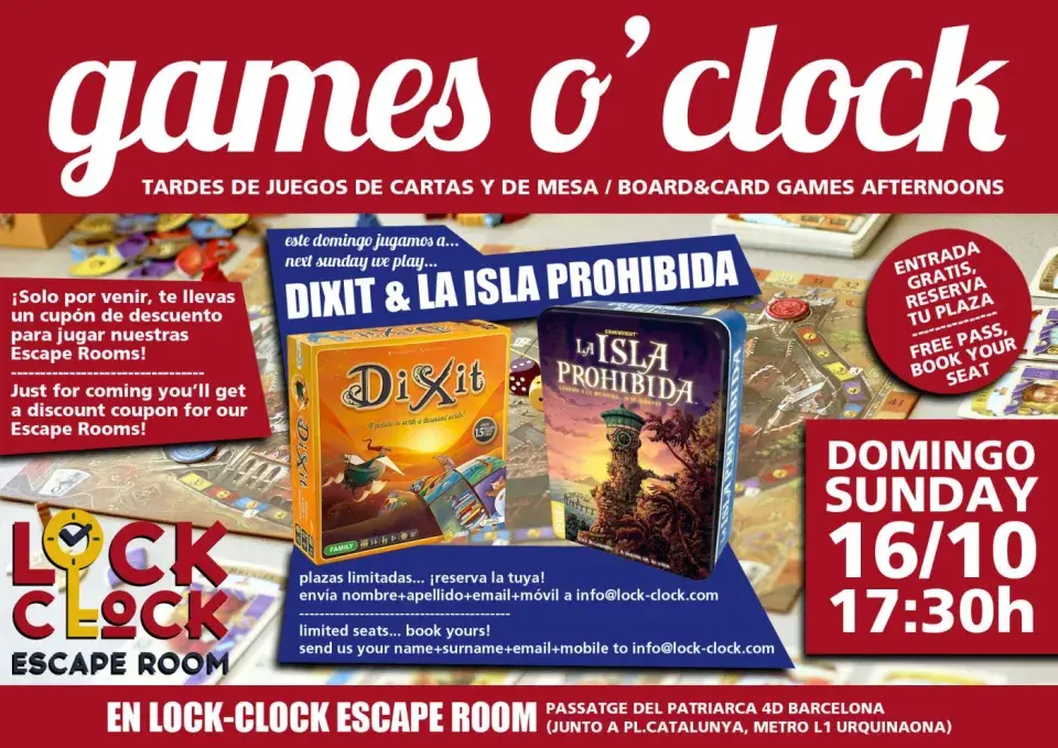 Montamos partidas de nuestros JUEGOS DE MESA&CARTAS favoritos... Este domingo que viene JUGAMOS A DIXIT & LA ISLA PROHIBIDA.