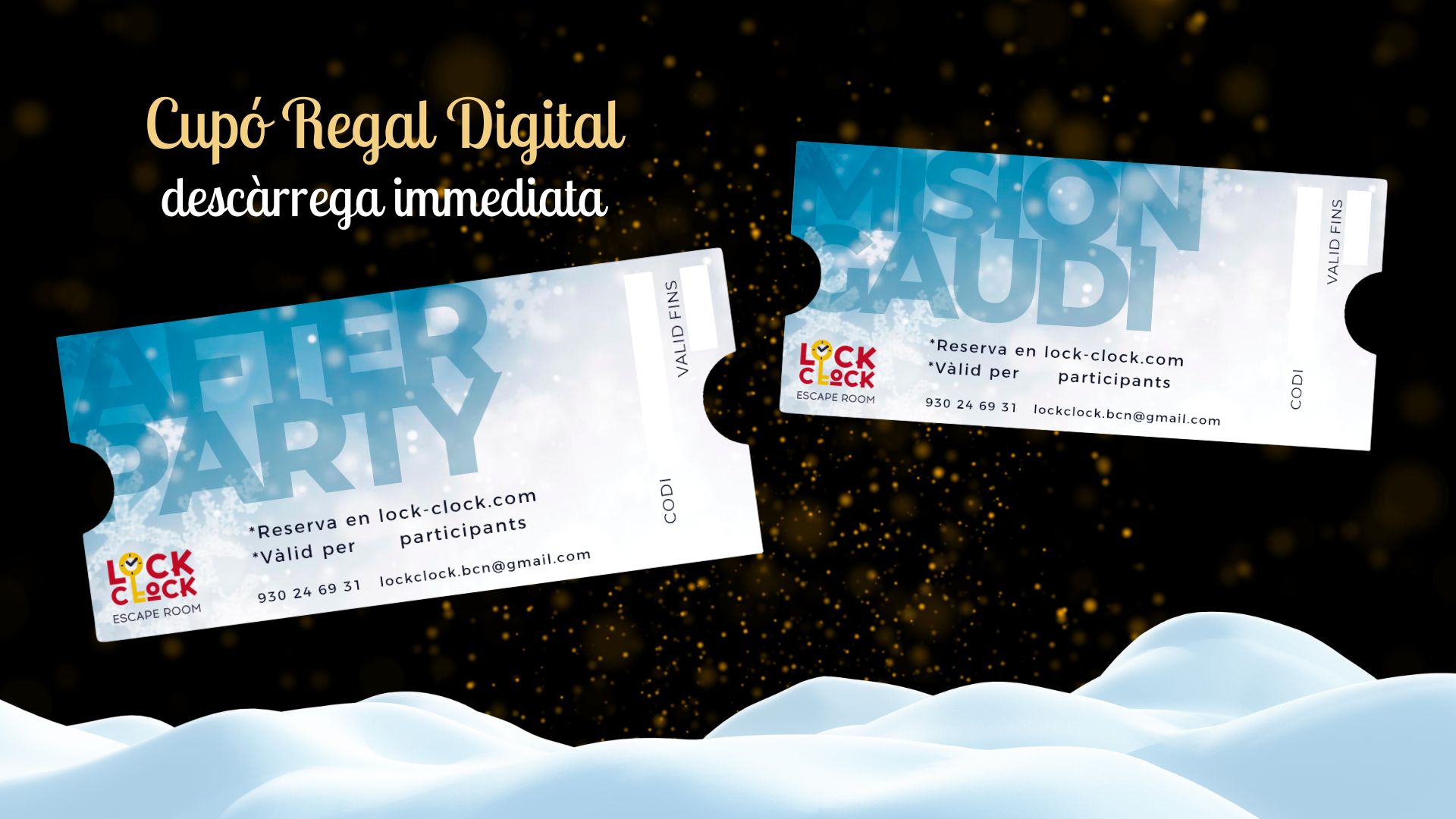 Pots comprar la targeta digital a la nostra web en català, espanyol o anglès i rebre-la al moment per correu electrònic després del pagament. Per aconseguir el Xec Regal Digital: baixa a aquesta mateixa pàgina i escull la sala que vols regalar. A partir d'aquí, només cal que segueixis els passos que t'indica la web.